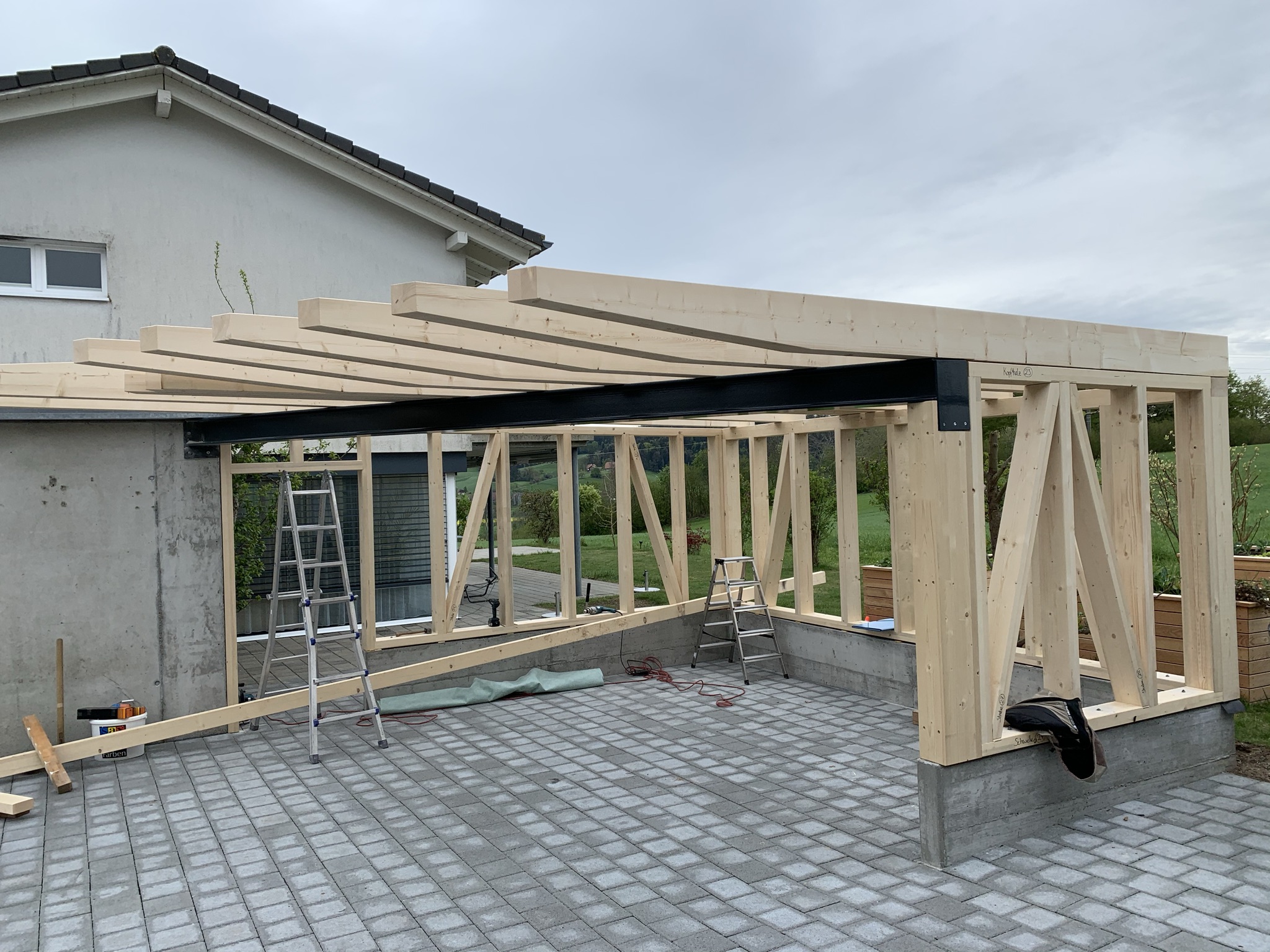 Auch für Familie Kunz aus Rütschelen durften wir einen Autounterstand realisieren – ein weiteres Projekt, das wir mit viel Freude und handwerklichem Können umgesetzt haben.