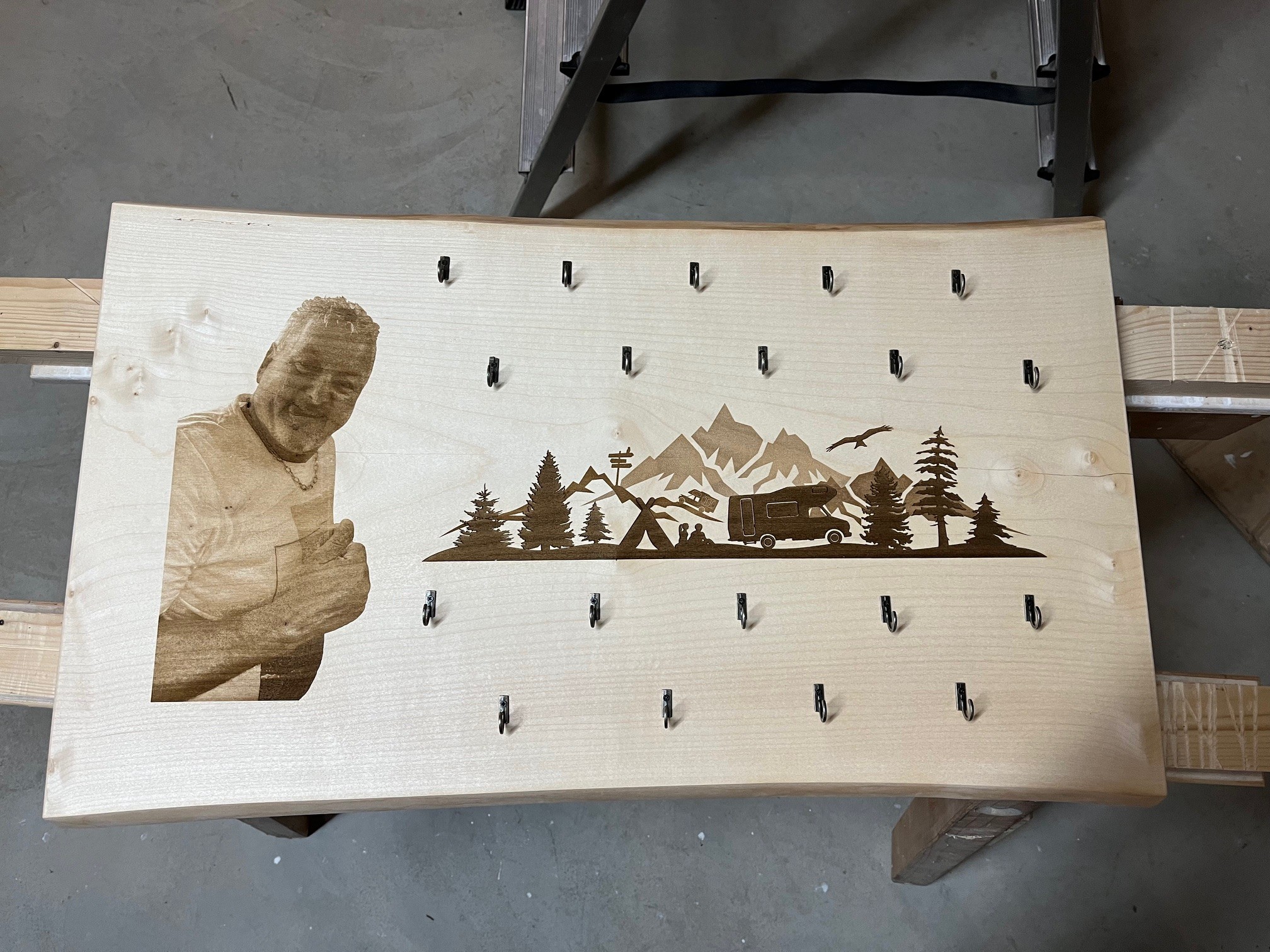 Für unseren Kunden durfte ich ein einzigartiges Schlüsselbrett lasern – mit präziser Gravur und viel Liebe zum Detail.