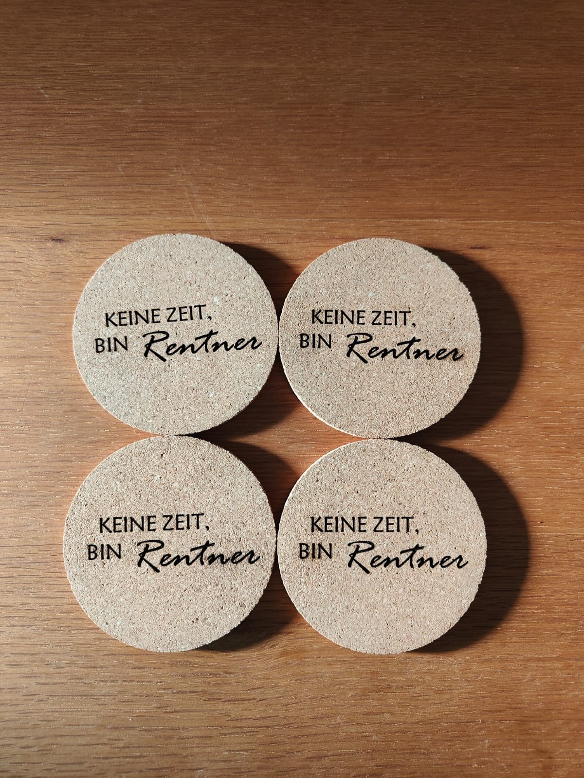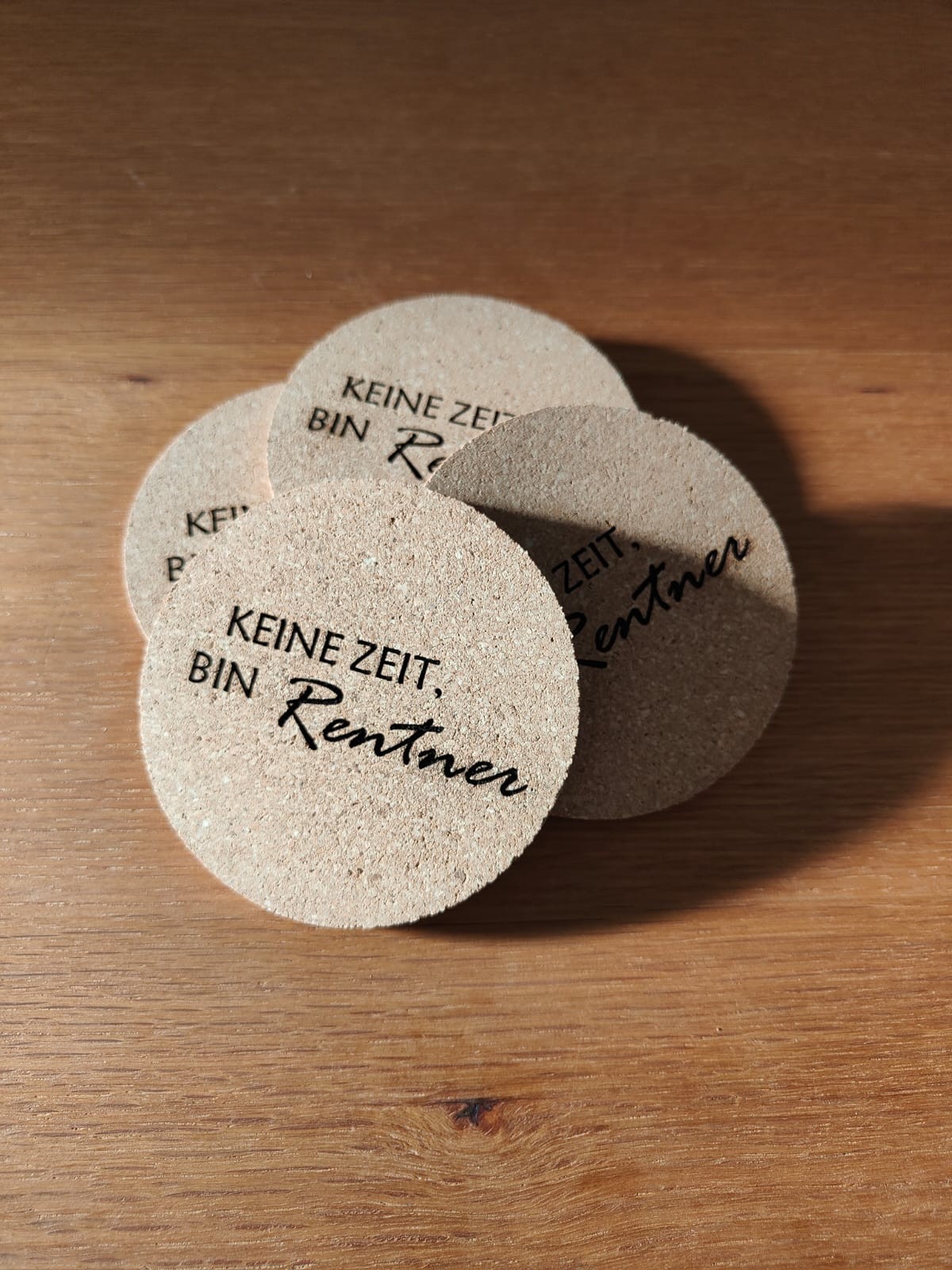 Für unseren Kunden durfte ich ein Schneidebrett und passende Korkuntersetzer lasern – als persönliches Geschenk für einen frischgebackenen Rentner.