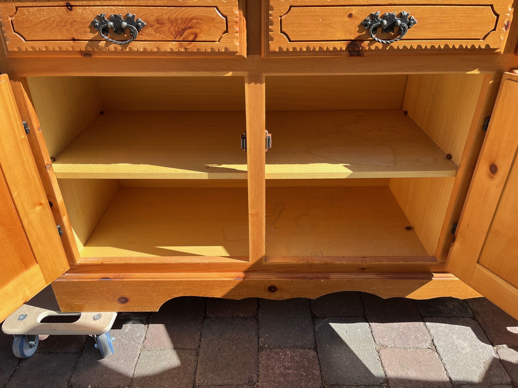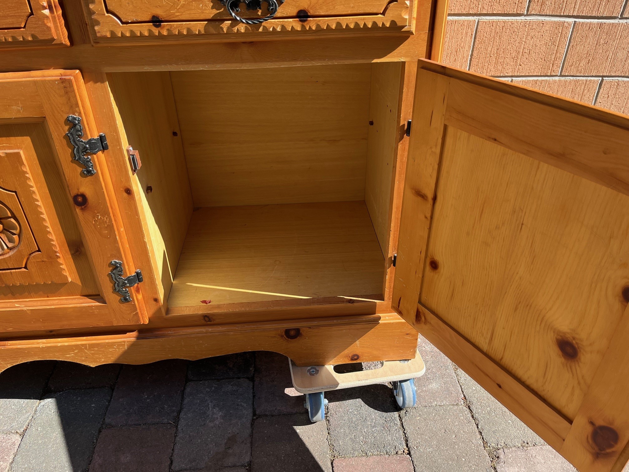 Ein echtes Schmuckstück für Liebhaber hochwertiger Holzmöbel: Dieses wunderschöne Buffet aus duftender Zirbe (Arve) vereint natürliche Ausstrahlung mit traditioneller Handwerkskunst.